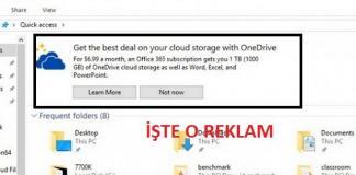 Microsoft Windows 10’un Dosya Gezginine OneDrive Reklamları Koydu