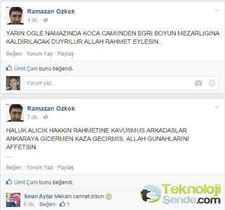Nazilli Belediyesi’nde çalışan Ramazan Özkök, Facebook profilinden MHP ‘li Nazilli Belediye Başkanı Haluk Alıcık’ın trafik kazasında öldüğünü yazdı.