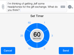 Bir önceki güncellemedeki sorun aynı zamanda şirket tarafından giderildi. Uygulama için belirtilen süre sonra kaybolan mesajlar düzenlendi. Bunun dışında son güncelleme ile, şirket Zamanlı Mesajlar geliştirdi ve 60 saniye zamanlayıcı uzunluğunu arttırdı. Zamanlayıcı bitene kadar alıcı zamanlı mesajlar ve görüntüleri birden çok kez görebilir.