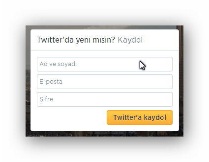 Twitter’a kaydolma formu.