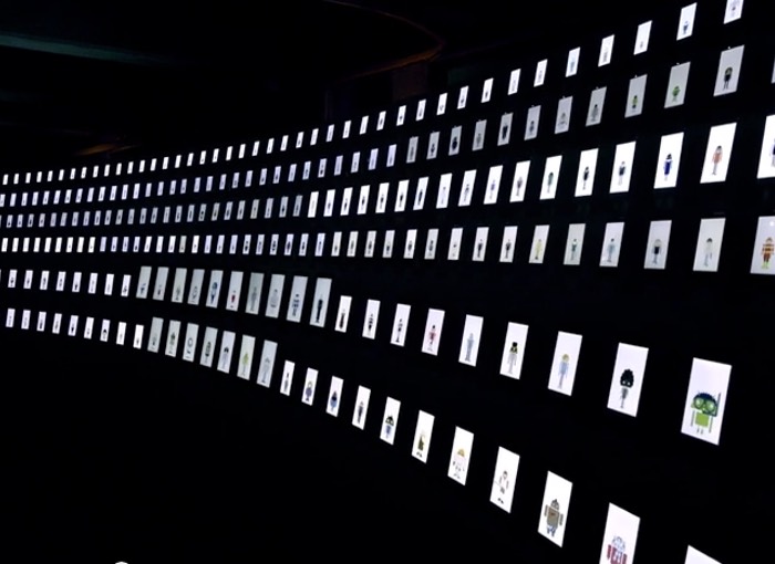 Bu ay Tokyo’da Google cihaz hoparlörleri kullanarak aynı şarkıyı söyleyen her biri farklı bir Androidify karakteri ile yüklenmiş hem akıllı telefonlar ve tabletten oluşan 300 Android cihaza bağlandı.