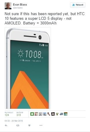 Snapdragon 820 işlemciye sahip olacak olan HTC’nin yeni amiral gemisi 4GB ram ve 32GB dahili depolama hafızası ile gelecek. Bugüne kadar üretilmiş en iyi ön ve arka kameraya sahip olacağını iddia edilen evleaks haberi HTC 10 hakkında tüm detayları Nisan ayı itibariyle öğrenebileceğiz. HTC 10, 19 Nisan 2016 tarihinde tanıtılması bekleniyor.