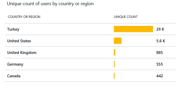 Microsoft’un geliştirici konferansı BUILD’de tanıttığı deneysel howold.net projesi Türkiye’den gördüğü yoğun ilgi sayesinde kısa sürede viral hale gelmişti. Aşağıdaki grafik Howold.net’in açılmasının ardından geçen bir kaç saatte tekil kullanıcı sayılarının dağılımını gösteriyor; Türkiye açık ara önde.