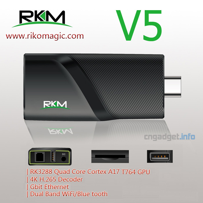 Rikomagic bu hafta Rockchip RK3288 işlemci ve Mali-T764 grafik tarafından desteklenmekte olan yeni Rikomagic V5 şeklinde, TV sticklerine kendi aralığı için yeni bir ürün ekledi.