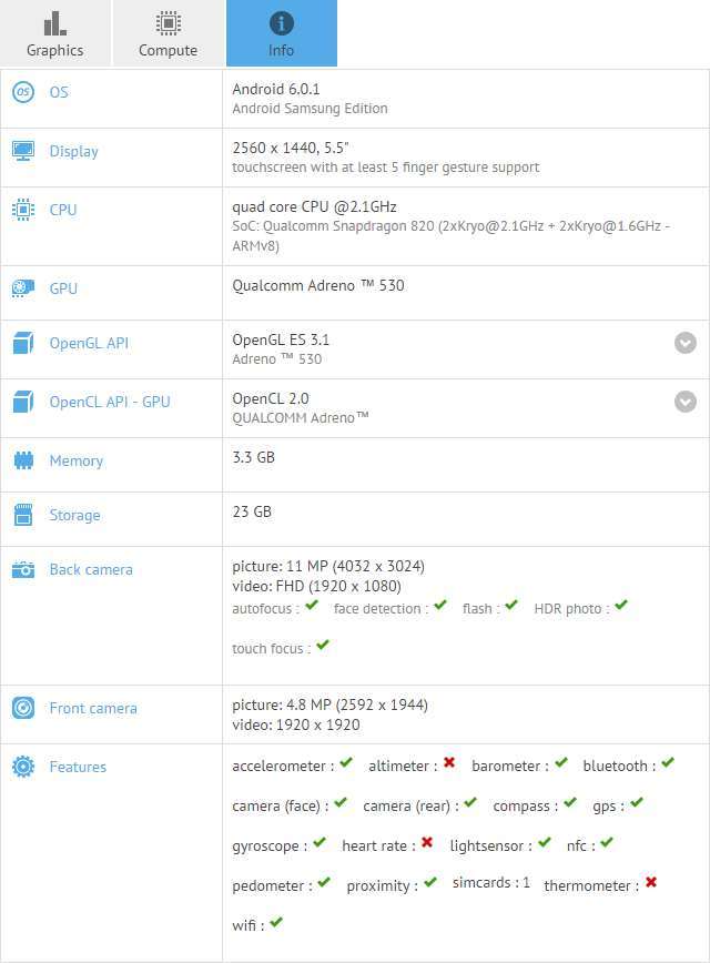 Galaxy S7 Active’in GFXBench’de Görüntülenen Özellikleri ise şu şekilde :