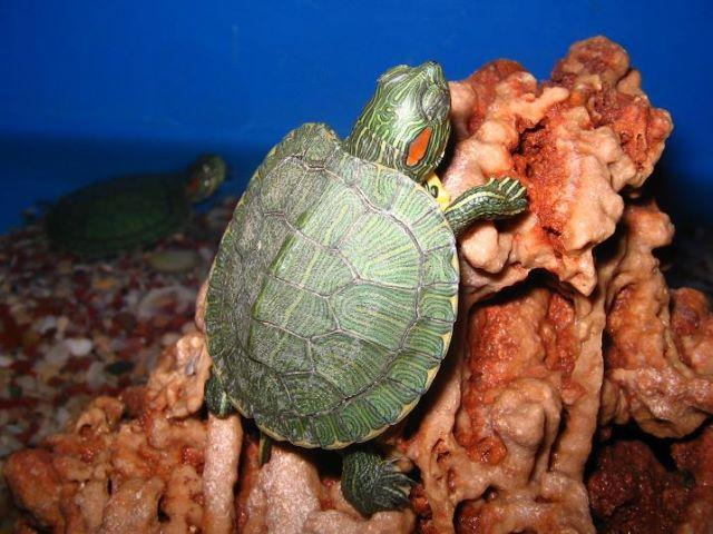 Kırmızı yanaklı su kaplumbağası.