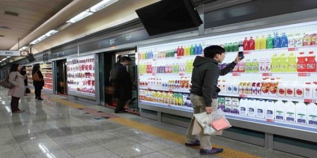 Güney Kore’de tren , gar Bilboardlarına marketlerdeki ürünlerin resimlerini yapıştırmış , bu resimlerde olan QR kodunu akıllı telefon okutunca istediğiniz ürünü satın alma imkanı sunuyor .Akıllı telefona uygulamayı indirip istediğiniz ürünü satın alabiliyor ve istediği saatte evinize geliyor .