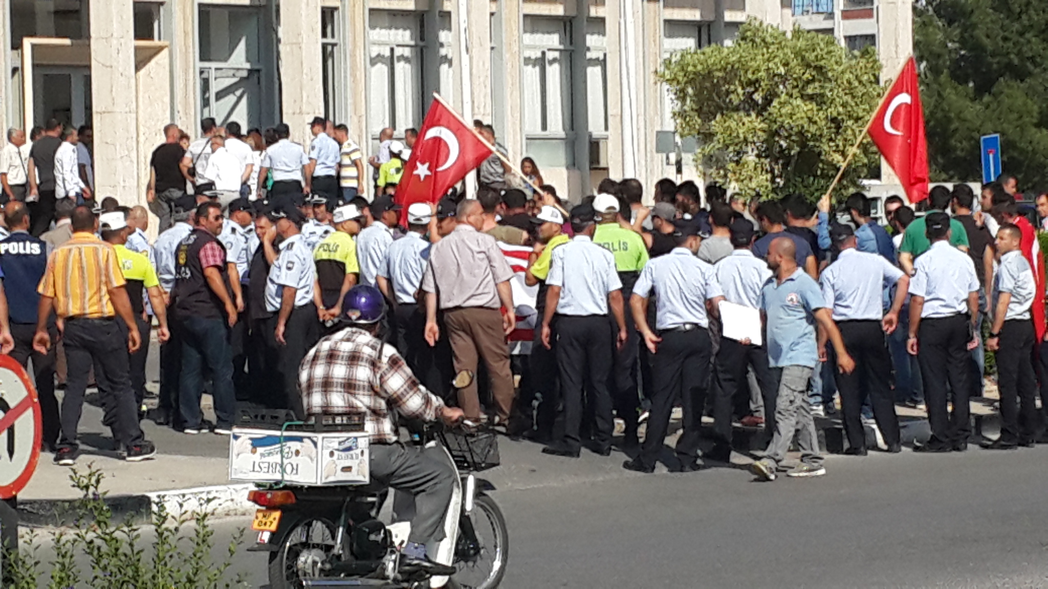 Bugünkü mahkemede yine onlarca polis koray başdoğrultmacı'nın davası için Gazimağusa kaza mahkemesi önünde nöbet tutmaya geldi, ortalıkta tek sivil koray başdoğrultmacı'nın duruşma çıkışını görüntülemek...