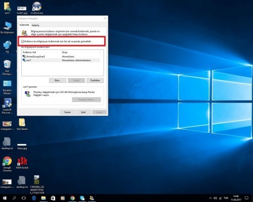 2.Adım : Windows 10’da Şifre/Parola kaldırma işlemi için 2. adımımız aşağıdaki fotoğrafta da gördüğünüz üzere, kırmızı çizgi içine aldığımız bölgedeki tik’i kaldırmanız. Tik’i kaldırdıktan sonra tamam tuşuna basmanız gerekmektedir.