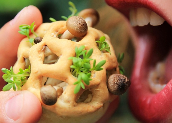 Bu projede tohumlar, sporlar ve maya içeren çoklu katmanlar kişiselleştirildi ve 3D dosyasına göre yazdırıldı. Beş gün içinde bitkiler ve mantarlar olgunlaşarak katı maya içerisinde fermente oldu.