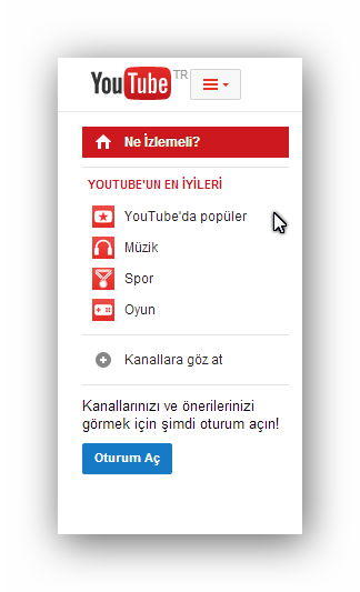 Bu formu doldurarak siz de kendinize ait bir Google hesabı elde edebilirsiniz. Bunun ardından Youtube‘a giriş yapabilirsiniz. Youtube ekranın sağ panelinde aşağıdaki gibi bir menü ile karşılaşacaksınız.
